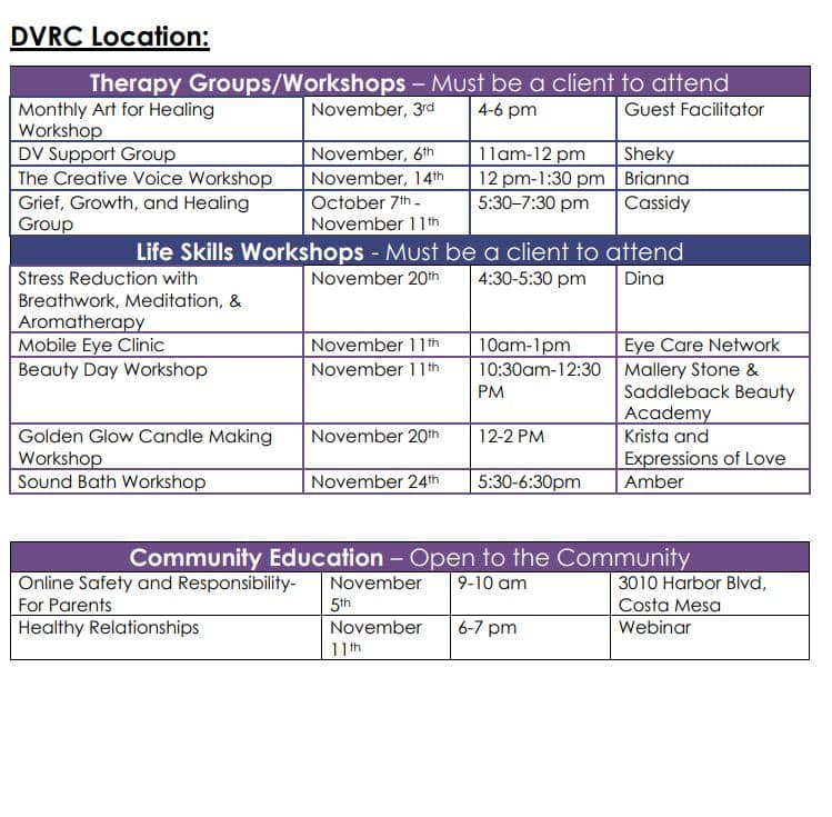 For more details and eligibility, call 949-361-3775 or email: reception@laurashouse.org.